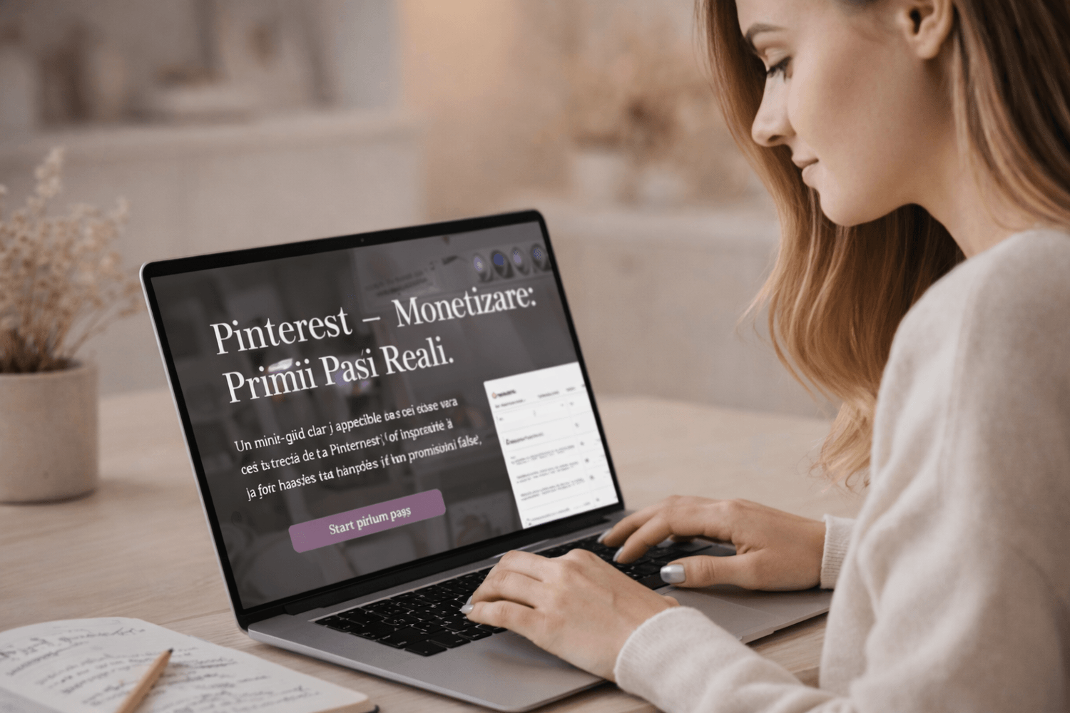 Nu este despre mai mult conținut, ci despre claritate,structură și primii pași reali către monetizare.„Pinterest → Monetizare: Primii pași reali” îți arată cum să începi organizat, fără improvizație și fără promisiuni false.
